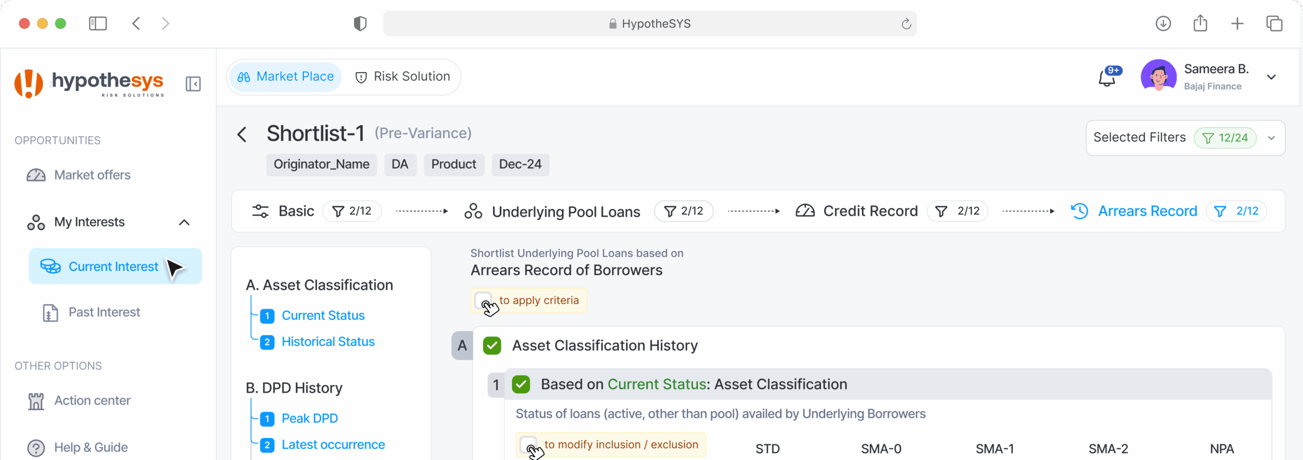 Advanced algorithms to enable filtering of loans in a pool, based on multiple critical parameters